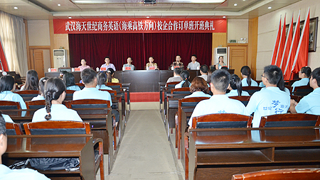 院党委委员、副院长周志和致辞。武汉海天世纪船务有限公司副总经理余立鹏介绍了公司情况并作企业文化讲座。外语系主任刘燕、学生代表曹慧分别作表态发言。(陈梦林)