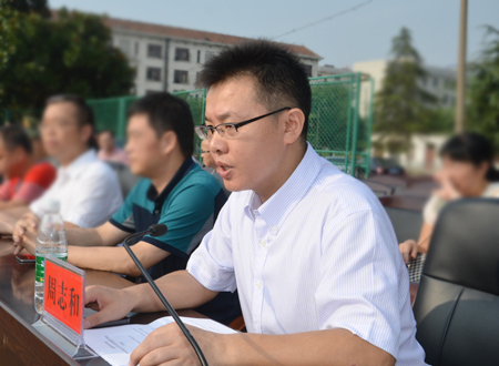 教师代表外语系谢杰老师,老生代表、公共事务管理系2012级酒店管理1班齐畅,新生代表、机电工程系2014级电气1班谢富强先后发言。