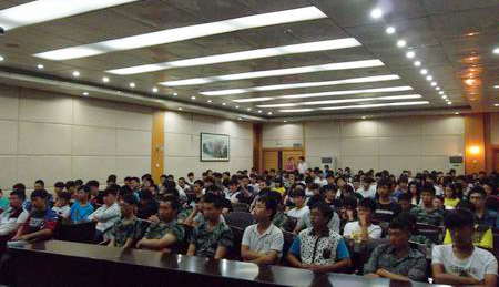 刘罗仁要求同学们对大学生生活和自己的人生要充满信心,做好三年大学学习生活的规划,并要付诸行动,一步一个脚印,一天一天去超越自己。(电信系)