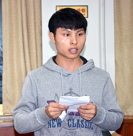 会上,付鹏就代表团组成及前段训练情况作工作汇报。教练员、运动员代表分别汇报前段训练情况并作表态发言。我院相关处室系部负责人也逐一表态,将全力支持参加“少运会”的运动员们,为他们排忧解难,做他们坚强的后盾,并预祝运动员能够取得好成绩,为学院争光,为娄底添彩。