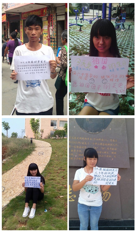 中华人民共和国成立65周年之际,娄底职院财贸系的学子们以别样的方式表达了自己对祖国的祝福。