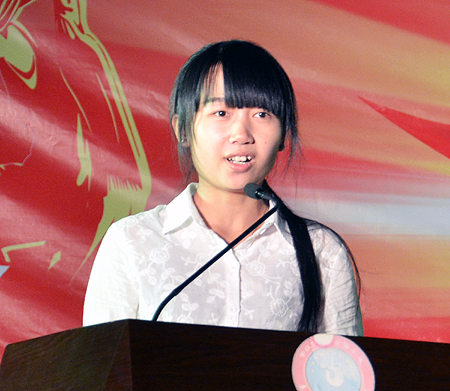 胡薇代表全院学生作表态发言