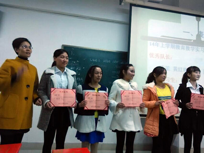 11月10日晚七点,外语系12级应用英语专业教育教学实习、英语课堂教学实训总结表彰及汇报演出在主教楼510隆重举行。出席大会的有系主任刘燕,教学主任肖付良,学工主任贺建良,指导老师谢杰、赵熹妮、周志军及外语系全体学生。由罗丹同学主持。