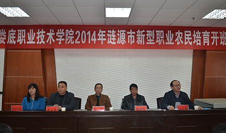 11月26日上午,涟源市2014年度新型职业农民培育开班典礼在我院举行。我院副院长龙伟,涟源市农业局副局长颜罗生、党组成员黄孟龙,涟源市财政局领导邱玲姣,我院继续教育部主任王自然出席并在主席台就坐。参加开班典礼的还有首批80名新型职业农民培育对象、全体任课教师、涟源市农业局及我院继续教育部相关工作人员。典礼由王自然主持。