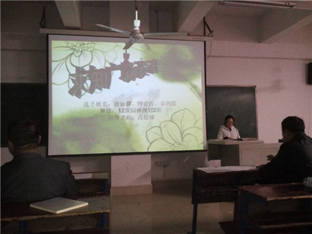 朱勇志主持并宣布比赛开始,参赛学生代表上台利用PPT向在座的评委和观众进行作品展示和讲解,此次作品的主题是学校励志广场的设计方案,参赛学生们集思广益,充分发挥自己的想象力并结合所学专业知识设计出了富有特色的设计方案,得到了现场评委和同学们的肯定。但是,也出现了许多不足的地方,主要体现在设计过程中考虑不够周到、图纸不够规范等,赛后罗少华、曾玉华和肖娇娣等园林专业老师对作品进行逐一点评。最终唐丽群、钟红霞、卓玛措团队获得一等奖;向思华、左韬团队,陈?啤⒆薷咄哦拥然竦枚?等奖;蒋欢欢、罗英团队,马星星、杨聪迪团队,彭小青、陈帆团队获得三等奖。