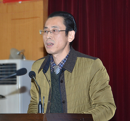 培训团团长、院党委委员、副院长龙伟主持报告会