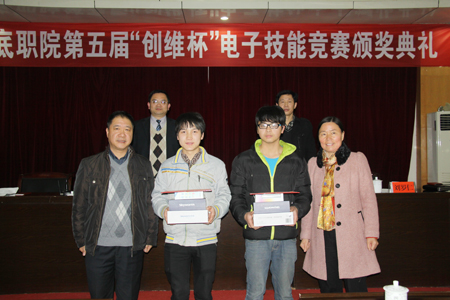 第五届“创维杯”电子技能竞赛于12月18日在我院新培训楼电子实训中心举行,竞赛得到了学院和电子信息工程系领导及老师的高度关注,创维集团公司人力资源部经理梁惠萍、我院副院长郭广军、电子信息工程系主任刘罗仁亲自到场观战。 此次报名参赛的101名选手来自学院应用电子专业、通信专业、智能楼宇专业、电气自动化专业等。比赛分为两个大组进行,一、二年级为第一组,竞赛内容是电子产品的组装和调试;三年级分为第二大组,竞赛内容是电子产品的设计、组装和调试。在两个小时的比赛中,同学们努力发掘自己的实践创新能力,认真钻研,精心设计制作,所有制作成品获得了观战领导和老师们的一致认可。最终唐用、江水清获得大赛一等奖,李宗南等5人获得二等奖,李仁志等15人获得三等奖,大赛还产生了优胜奖30人。