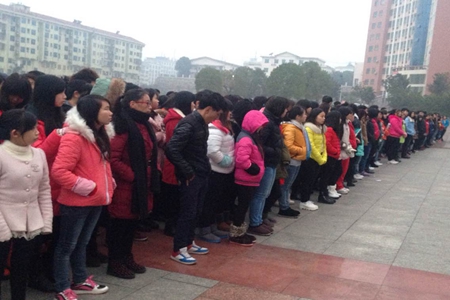 1月14日早7点,财贸系诚信考试动员大会于文化广场举行,财贸系教学主任肖宏华、学工主任阳娟以及学生干事谭鹏飞、各辅导员老师出席,全体学生参加。大会由阳娟主持。
