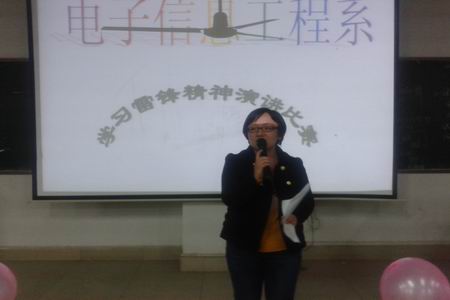 3月30日晚,电信系在主教楼410举行“学习雷锋精神演讲比赛”。出席本场比赛的领导有电信系学工主任刘寿松,学工干事李欣欣,13级辅导员李韶辉,14级辅导员彭继光。14级所有班级作为比赛观众。