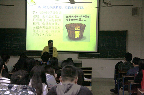 为响应学校综合育人的理念,提高当代大学生全面发展的需要,4月12日晚,建艺系在主教楼多个教室开展以“给力素质•全面发展”为主题的班会。