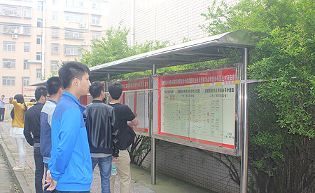 三是营造考试氛围,切实服务考生。我院在考试区域着力营造安全有序、严肃庄严的考试氛围;在校园干道设立交通标示牌,利用宣传公示栏公示《报考简章》、考生须知等相关资料,在考场内张贴营造氛围的自考标语;在考区设置考生休息室、茶水供应处、医疗咨询处,为考生提供必要的后勤保障与服务。