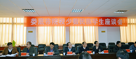 4月10日,娄底市民族团结进步行动组委会在娄底职院召开院校少数民族学生代表座谈会。娄底市人大常委会副主任刘宏业、市人大教科文卫华侨外事委员会主任委员石峰、副调研员曾敏,娄底市民宗局、市教育局、市卫生局等单位相关领导,娄底职院党委书记李文莲、党委委员、副院长周志和及相关部门负责人、5位少数民族学生代表,娄底卫校副校长肖建泳及相关部门负责人、3位少数民族学生代表参加座谈会。会上,领导们高度评价娄底职院少数民族学生工作严谨细致,生动活泼,成绩显著,表示将继续支持该院做好少数民族学生培养、管理工作。