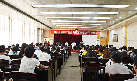 4月16日下午,湖南青年创新创业典型巡回报告会在我院主教楼多功能报告厅隆重举行。出席本次报告会的领导有团省委城市青年工作部副部长、创业办副主任姚彤,共青团娄底市委书记周海强,副书记周庶舟,团市委宣传部部长彭雅。本次报告会由院团委书记欧芳主持,各系学生代表参加。