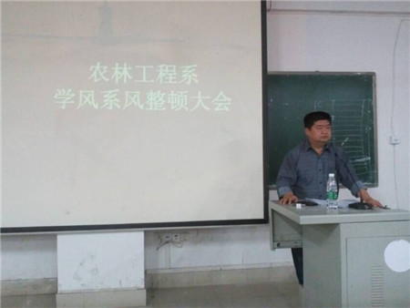 4月26日晚,农林系在主教楼310进行了“系风、学风整顿动员大会”。此次大会由系学工主任朱勇志主持。辅导员徐艺、颜勤、王琦和全系同学参加了本次大会。