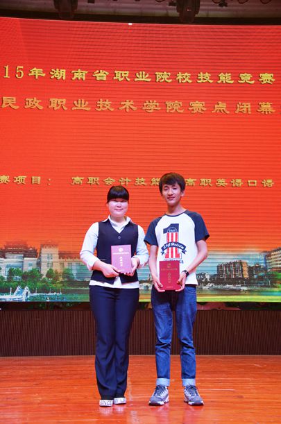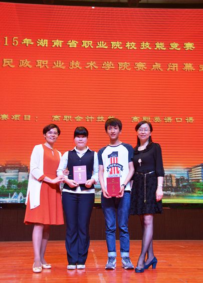 2015年湖南省职业院校技能竞赛英语口语大赛于5月9日在长沙民政职业技术学院举行。全省共有来自各个高职院校的专业组参赛选手27人,非专业组参赛选手42人。我院外语系主任刘燕、教学主任肖付良、邓海燕老师带2名选手参加了本次竞赛。