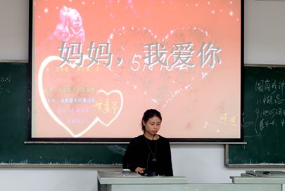 517日晚上700,外语系在主教楼318召开“温情五月,感恩父母”主题班会,参加的人员有辅导员周春红、外语系13商英班和14级全体同学。