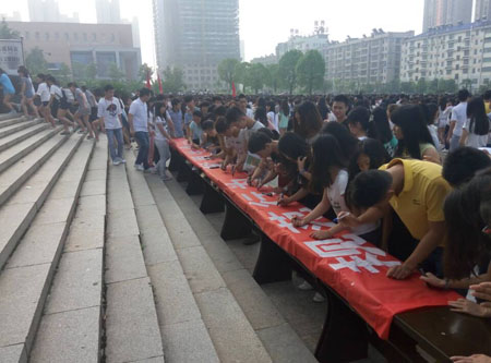 最后,各班代表在“规范行为,敬畏生命” 主题横幅上签名,宣传动员大会圆满结束。(学工处)