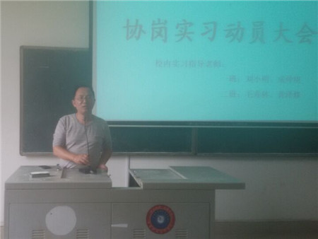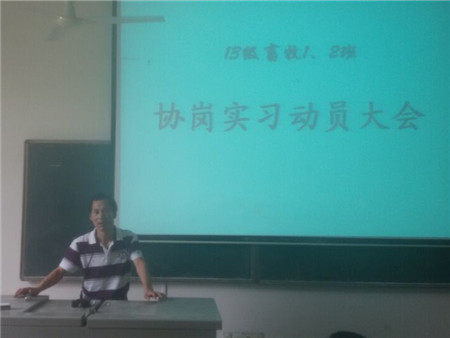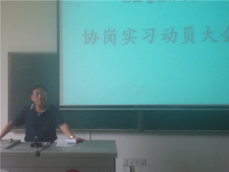 首先,由李小明老师上台宣布动员大会正式开始,接下来由禹华芳发言,向在座的同学们着重提出了实习期间应注意的安全问题,且针对本学期期末考试要求同学们认证考试,诚信迎考。接着朱勇志强调,在实习期间要虚心请教,不怕苦,不怕脏,发扬吃苦耐劳的精神,同时要学会处理人际关系,学会做人,懂得做事,并要求实习期留校的同学们要严格遵守校纪系规,按时作息,希望每位同学认真对待此次协岗实习,真正让自己学有所成 ,培养自己的实践经验,为以后就业打好基础。然后李继仁等老师相继发言,指出只有付出自己应有的劳动,才能获得想要的回报,要在实习期间多问、多看、多悟,且通过生动形象的例子告所同学们,要保持虚心学习的态度,将理论与实践更好的结合,提高自己的专业技术。