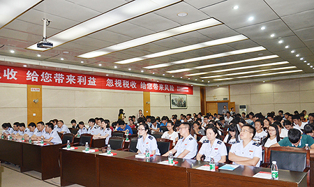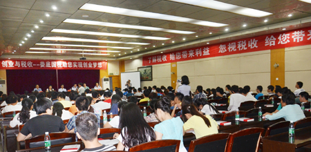 为普及税收法律知识,为我院大学生创业提供税法启蒙与服务,6月17日晚,我院特邀娄底市“金色税收”税收志愿者分会在主教学楼报告厅举办了一场“创业与税收――娄底国税祝您实现创业梦想”的专题讲座。