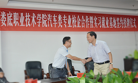 龙伟发表讲话,指出,娄底职院近年来实现了跨越式发展,进入国家骨干高等职业院校第一方阵,创造了职业教育的娄底模式,专业建设、基础设施、师资团队、校企合作、科研竞争力等各方面显现较强优势;汽车学院发展迅速,短短4年时间已呈现规模大条件好,培养模式先进,学生素质强的态势,体现了娄职发展速度。龙伟希望校企双方强强联手,长久合作,互利共赢。