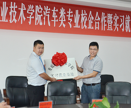 易爱良与八家企业代表签订了合作协议,龙伟、周志和向企业授予实习就业基地牌匾。根据协议约定,双方以“互相合 作、互利互惠、实现双赢、共同发展”为基本原则,互认挂牌,开展就业推荐、员工培训合作;开展订单培养,合作办学;联合开展技术合作,技术援助、学术研讨工作;进行实习、实训基地建设合作;互派挂职交流合作;开展教学、科研及产学合作。