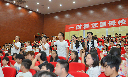 配乐诗朗诵、张萍老师独唱《爱的奉献》、群唱《朋友》穿插在仪式中,将现场气氛数次推向高潮。