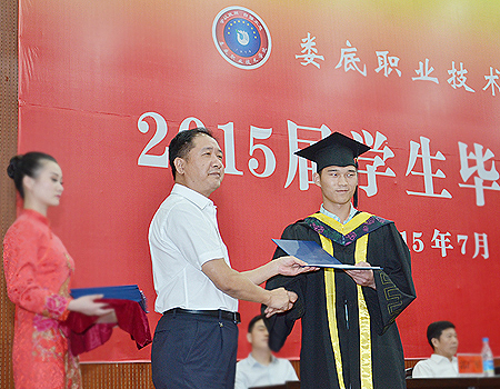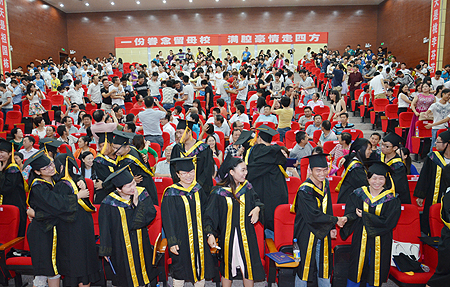 7月5日下午,我院2015届学生毕业典礼在新培训楼学术报告厅隆重举行。全体在家的院领导、各部门、单位主要负责人,院系两级学生管理人员,2015届毕业班级辅导员及毕业班级教师代表,2015届毕业生代表、在校生代表参加了典礼。