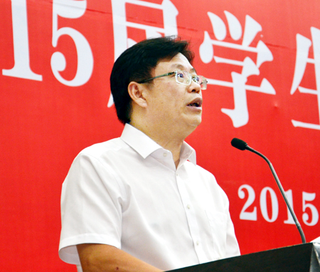 院长雷立成致辞。“新生军训时的英姿飒爽,青年学习节的技能展示,文化艺术节的才艺表演,技能竞赛中的睿智缜密,运动场上的呐喊与拼搏,图书馆里的探索与思考,学海湖边的漫步与遐想,迎新宣传中的热情与细致,文明督导的坚守与执著,院长信箱中的建言与憧憬等等,这一切都恍如昨日,历历在目,真切感人。”回顾同学们在校度过的三年时光,雷立成很是感慨。他对毕业生们提出三点希望:一是不要怨天尤人,要学会自己想办法;二是不要好高骛远,要脚踏实地干事创业;三是不要斤斤计较,要胸怀宽广待人接物。雷立成以浅显朴实的故事与话语,谆谆告诫同学们要爱岗敬业,要奋斗拼搏。“母校是你们人生中的重要驿站,更是你们寄托情感的精神家园,要常回来看看!”