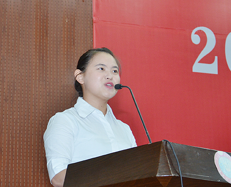 学工处处长、团委书记欧芳主持师生感言环节。受辅导员多方帮助完成学业的李红艳(机电系2009级)、李兴艳(机电系2012级)兄弟,受师生捐款救助的黄湘丽同学(外语系2012级),抒发了温馨感言。