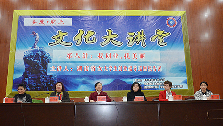 12月9日,我院“娄底·职业文化大讲堂”第八期活动,湖南省妇联、省教育厅主办,娄底市妇联、我院承办的“我创业我美丽”女大学生创业指导报告会在学术报告厅举行,为全院师生作了一组精彩的报告。