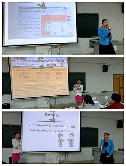 | 4 月 13 日晚 7 : 30 ,外语系在主教楼 410 开展 15 级 “ 学风建设大会 ” 。参加此次会议的有:系主任刘燕、教学主任肖付良、学工主任贺建良、辅导员张杨、谢丹老师及外语系 15 级全体学生。会议由贺建良主持。 首先,肖付良向大家介绍了湖南省英语口语大赛的比赛情况。肖主任对比赛结果进行了公布:在此次比赛中, 15 级商务英语专业谢娉婷同学获得英语专业组第四名,获得二等奖,廖诗婷获非英语专业组的三等奖。随后,肖主任请两位同学向大家进行了图表陈述、英语辩论和情景交流三个环节的展示。选手流利的口语表达能力赢得了大家阵阵掌声。 其次,刘主任针对近期 15 级学生的表现情况进行了点评。根据辅导员、学生会上报的正面、负面典型,她对近期的表现优秀的同学进行了表扬,积极传播了正能量,并对一些违纪违规、不正之风进行了点名批评,并号召同学们向榜样学习,向先进学习,争当先进个人,争创优秀集体。 最后,贺建良传达了学工会议的会议精神,并对近期的主要学生工作进行了部署。 通过此次会议,同学们感受到了榜样的力量,认真反思了过去存在的问题,检查认识了自己的不足。会后,同学们纷纷表示,将牢记领导教导,向先进看齐,奋起直追,争做一名优秀的大学生。( 周叶)