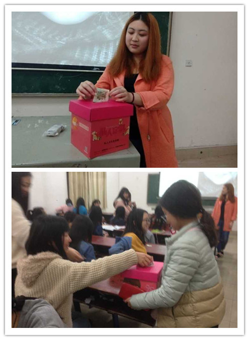 | 为了帮扶家境贫困、生活困难的学生,鼓励特困学生自强自立, 4 月 10 日晚上,财贸系 32 个班分班开展了“用爱融化特困学生心中的冰‘一元钱、一份爱’帮扶基金”主题班会。财贸系学工主任阳娟、学工干事谭鹏飞、姚凌虎进班检查,本次班会由各班辅导员主持。 活动中,辅导员向班级同学强调了“一元钱,一份爱”活动的精神和理念,通过 PPT 放映的形式,进一步深化活动的开展;有的辅导员给同学们讲述了特困学生的生活情况,呼吁同学们积极帮助更多的特困学生;有的辅导员自制了募捐箱并起到了模范带头作用。 主题班会的开展在全系立即引起强烈反响,同学们对本次活动也表现出了很高的积极性及关注度,纷纷向募捐箱里贡献出了自己的一份爱心。 通过此次主题班会,同学们接受了一次心灵的洗礼。不仅体现了财贸系学生乐于助人的高尚情操,也增强了同学们爱心帮扶意识,并宣扬和传递了让爱永恒。(郭杨阳 龙慧玲) 学工主任阳娟了解开展情况 辅导员开展主题班会 班会现场 师生一起募捐 | ||