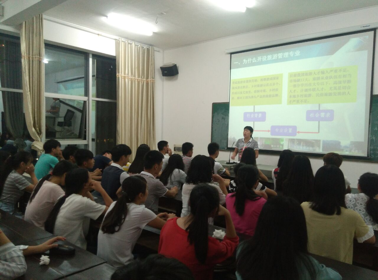 为让2016级新生对所设专业有深入的了解,公管系于9月1日晚在新培训楼321、327、323等教室举办了新生入学系列教育之“专业教育”主题讲座,系主任雷晚蓉、教学主任李海莉和酒店管理管专业骨干教师邹慧鹏分别对旅游管理专业、酒店管理专业、文秘专业做了详细介绍,16级新生参加了本次教育活动。
