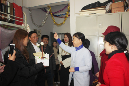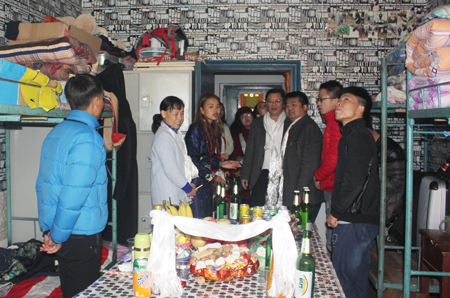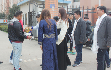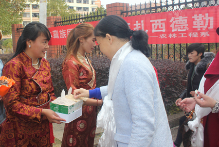 2月27日是藏历正月初一,也是藏族民众心目中最隆重的藏历火鸡新年。清早,院党委书记李文莲、副院长颜彩飞带领团委书记、学工处处长欧芳,副处长刘轶中,李规,易瑜,农林系主任刘梅秋,副主任朱勇志等,来到藏族学生寝室祝贺新年。