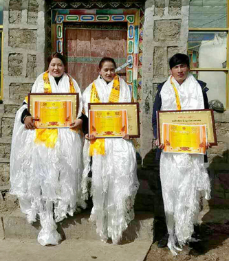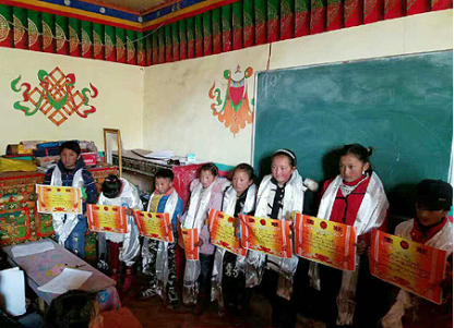 一下子,就来了40个孩子。在哪上课呢?村里有位党员家里比较宽敞,知道他们想办培训班,主动提出可以在自己家上课;凳子不够,就让孩子们自己从家里带。就这样,寒假补习班正式开张了。20171月到230天里其宗和她的同学每天上午9:00-12:00,下午2:00-500上课,给孩子们补习语文、藏文、数学、英语四课程。孩子太多,一次坐不下,就分批上课。教材就用孩子们上学的课本,课下还布置了作业,第二天要交。其宗每天都要花大量时间备课、批改作业,一直坚持到寒假结束,还组织了考试成绩好的孩子领到了奖状,别提多高兴了。