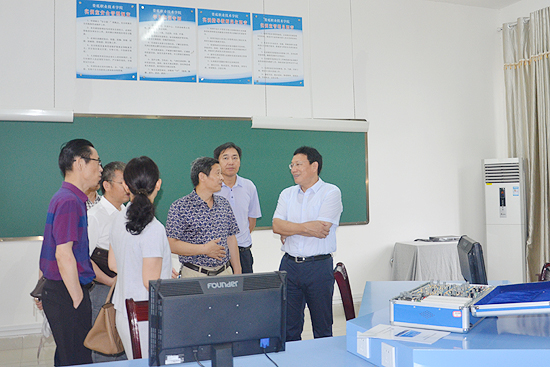 6月23日,市委常委、组织部部长华学健,市委组织部常务副部长彭展发,市委组织部副处级组织员、人才科科长李劲松在威尼斯官网党委书记李文莲,党委副书记、校长朱忠义等校领导及相关部门负责人陪同下参观考察了学校实验实训设施。