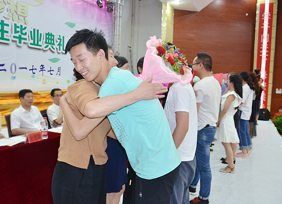 随后,毕业生们向教师代表们、辅导员代表们分别献上鲜花,行谢师礼。满怀深情的拥抱、感恩的敬礼让现场温情洋溢。