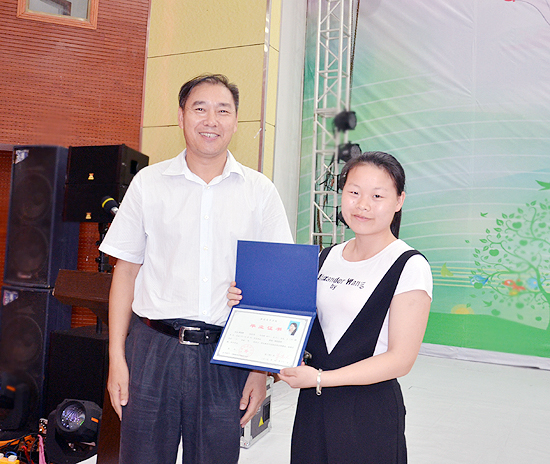 校长朱忠义为谭文秀等30名优秀毕业生代表颁发了毕业证书。
