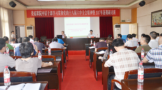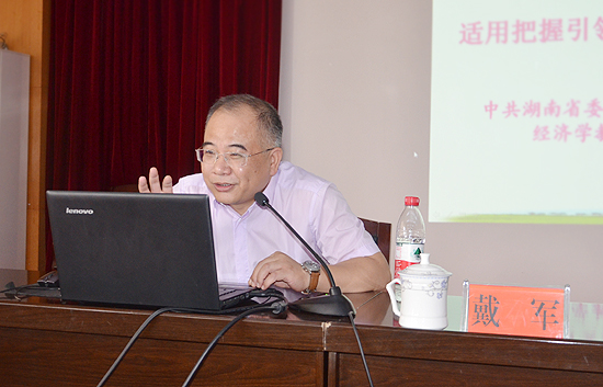 7月11日上午,湖南省委党校戴军教授应邀来到威尼斯官网,给中层干部作《适应把握引领经济发展新常态》专题讲座。讲座由党委副书记王健龙主持。