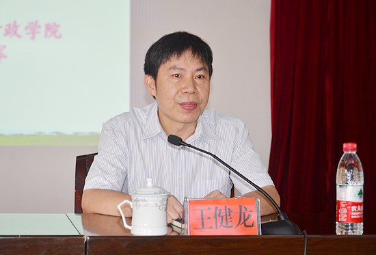 王健龙在总结中指出,戴军教授的讲座系统讲授了经济发展新常态的有关概念与逻辑体系,加深了大家对新常态的理解,开阔了视野与思维。王健龙认为,我们必须思考学校如何适应地方经济建设的新常态,在专业设置、人才培养上适应经济结构调整、产业发展,把握引领学院发展的新常态。