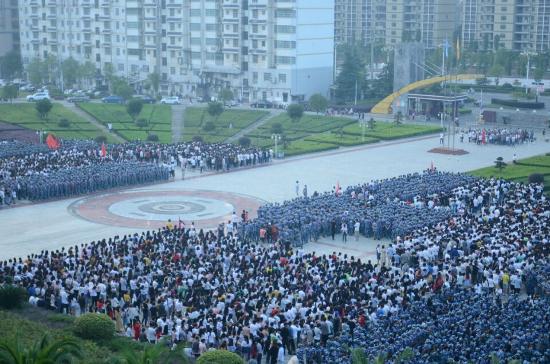 六点四十分,学生们在各班辅导员老师的带领下,按照班级指定位置排成整齐的队伍,早早地来到文化广场,等待升旗时刻的到来。