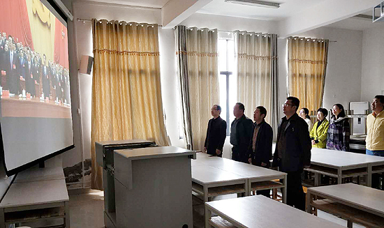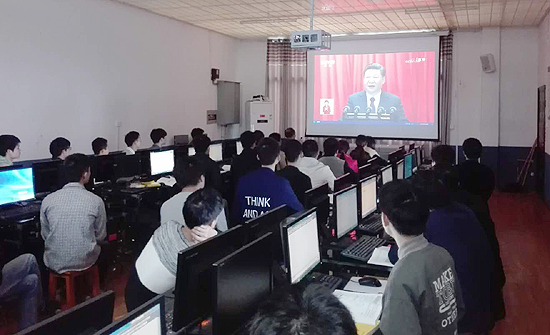 威尼斯官网干部师生充分利用电视、网络、广播及公共视频资源等各种媒体,认真收听收看党的十九大开幕盛况的报道。在家的校领导、机关党总支支委成员和机关党总支直属的9个支部书记在综合楼512会议室集中收看,其他支部有的在会议室,有的在多媒体教室,有的在办公室集中观看,部分班级组织在教室观看,还有许多师生通过电脑、手机观看视频直播,在微信群、QQ群学习习近平总书记的报告讲话,交流学习心得体会。