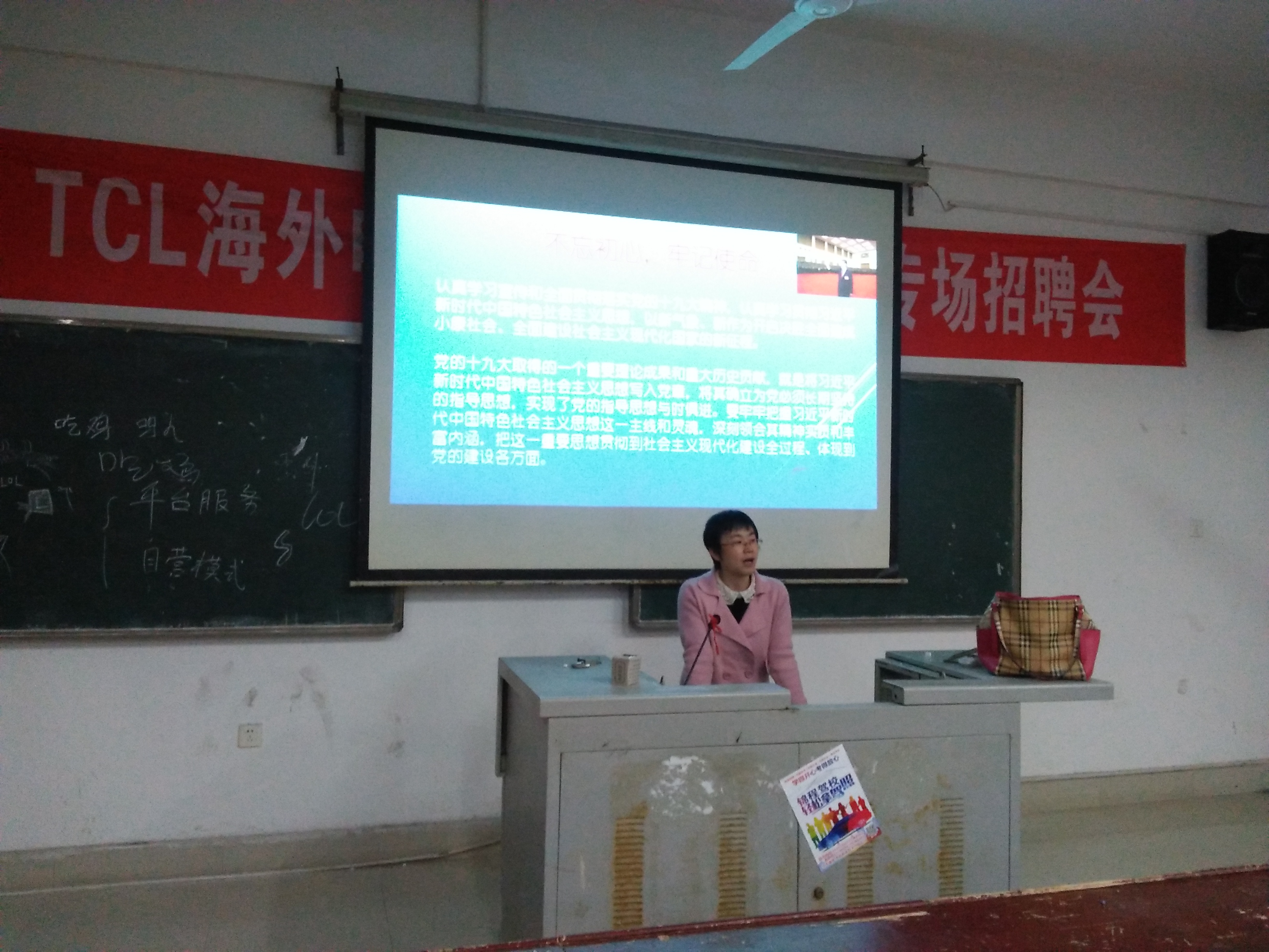 根据8803威尼斯检查中心《党的十九大精神传达学习要点》内容。11月7日至17日,电信学院各班在主教楼学习传达党的十九大精神会议,会议由各班辅导员主持。