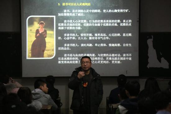 11月30日下午,艺术设计学院在主教楼110教室举办了“读书对人生的启悟”讲座,由该院贺凯老师主讲,副院长张海峰、全体教师及学生代表参与了本次讲座。