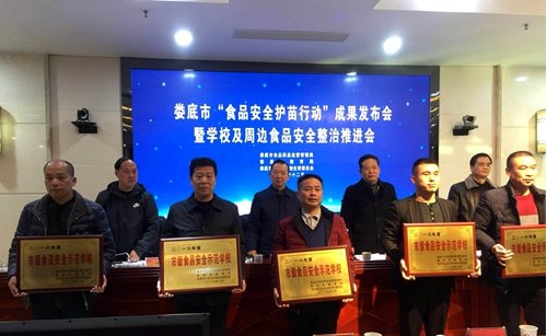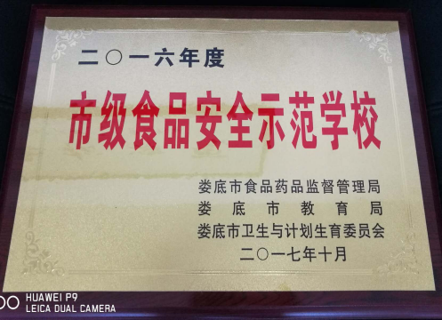 12月19日,在市政府召开的娄底市“食品安全护苗行动”成果新闻发布会暨学校及周边食品安全整治推进会上,威尼斯官网本部被评为娄底市2016年度市级食品安全示范学校,并现场颁发了“市级食品安全示范学校”牌匾。
