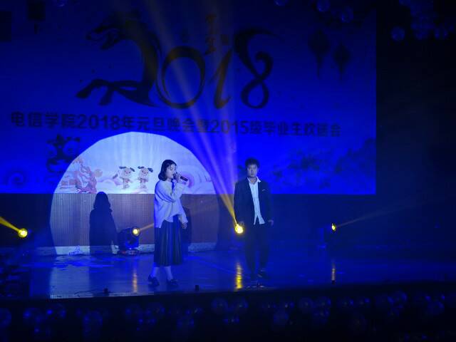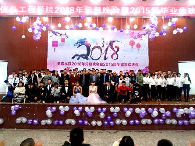 12月27日晚,电子信息工程学院2018元旦晚会暨2015级毕业晚会在新培楼学术报告厅圆满落幕。学校党委副书记王健龙,学工处处长李规,团委书记刘媛,电信学院院长刘罗仁,副院长谢完成、晏然,学院全体师生以及来自各二级学院的师生代表欢聚一堂,在暖冬之夜,欣赏这场青春盛宴。
