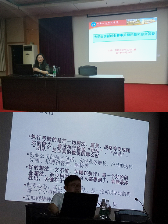讲座主要内容有《大学生创新创业赛事介绍》、《创业计划书的撰写》、《项目路演及答辩技巧》、《大学生创新创业赛事关键问题和综合答疑》四个方面。