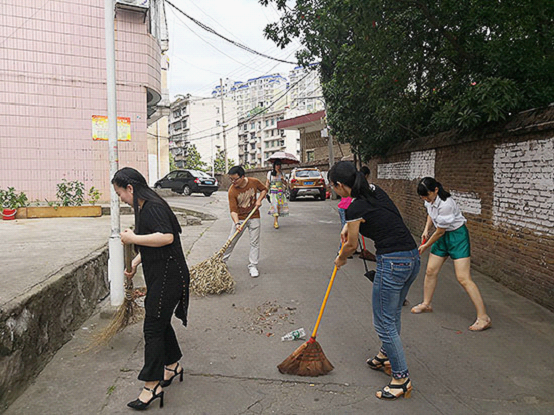 来到何家巷口,大家立刻都投入到清扫卫生的活动当中,大家各自挥舞着手中的卫生工具美化社区的环境。