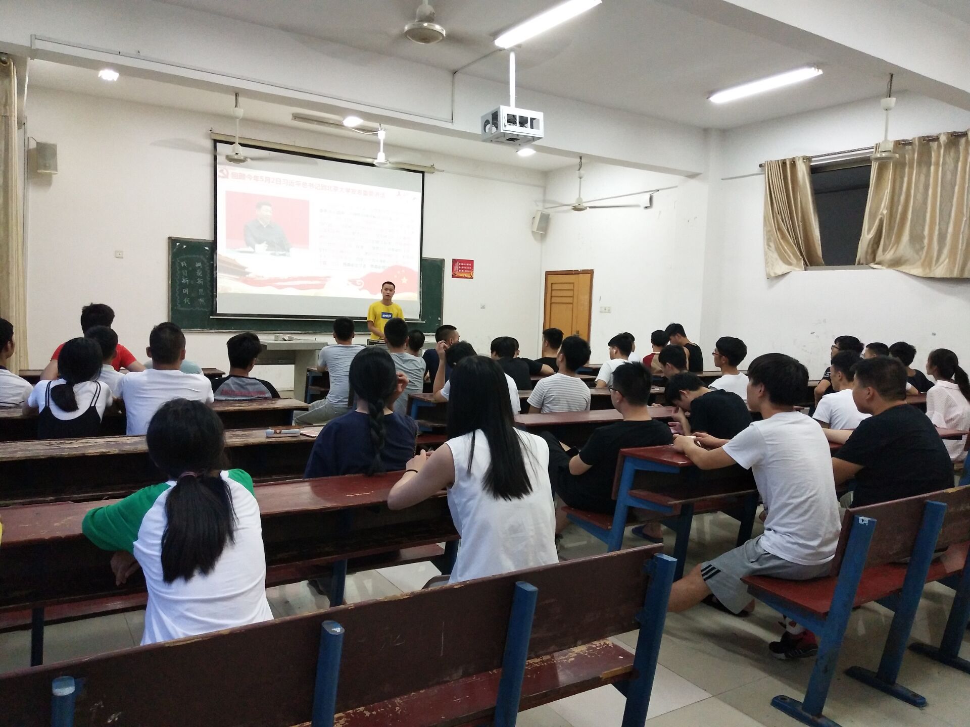 为深入学习宣传贯彻习近平总书记在北京大学师生座谈会和纪念马克思诞辰200周年大会上的重要讲话精神。6月28日晚,电信学院组织各班于主教楼5楼多媒体教室分别开展了“学习新思想,千万师生同上一堂课”主题班会活动。