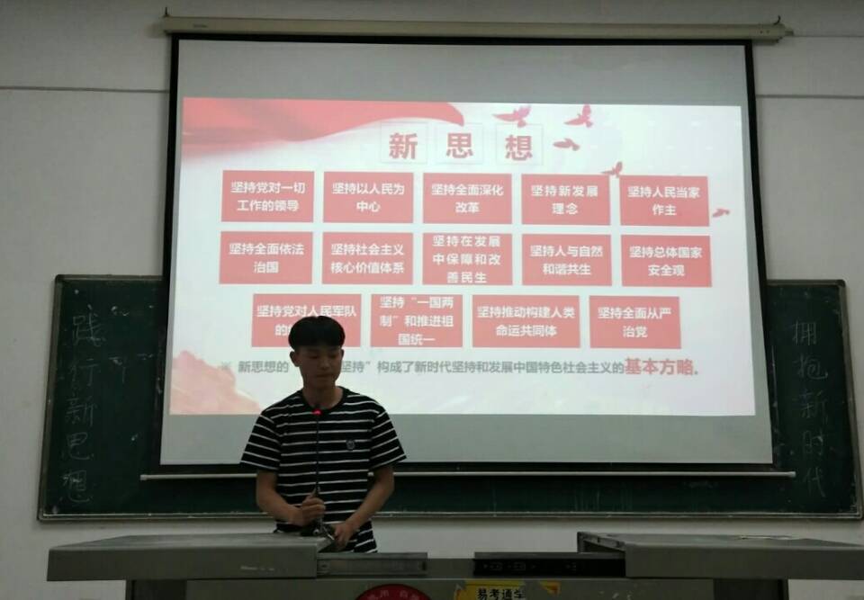 为积极响应校团委号召,深入学习十九大精神和习近平总书记提出的重要思想,6月28日晚,电信学院组织各班于主教楼5楼多媒体教室分别开展了“践行新时代,拥抱新思想”组织生活会。